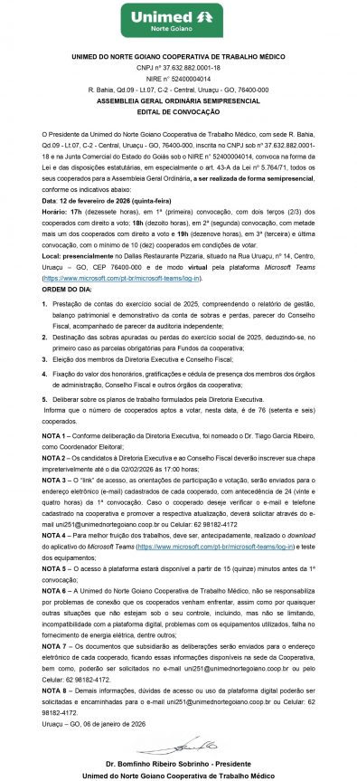 Goiânia e Uruaçu, GO, 14 de janeiro de 2026
