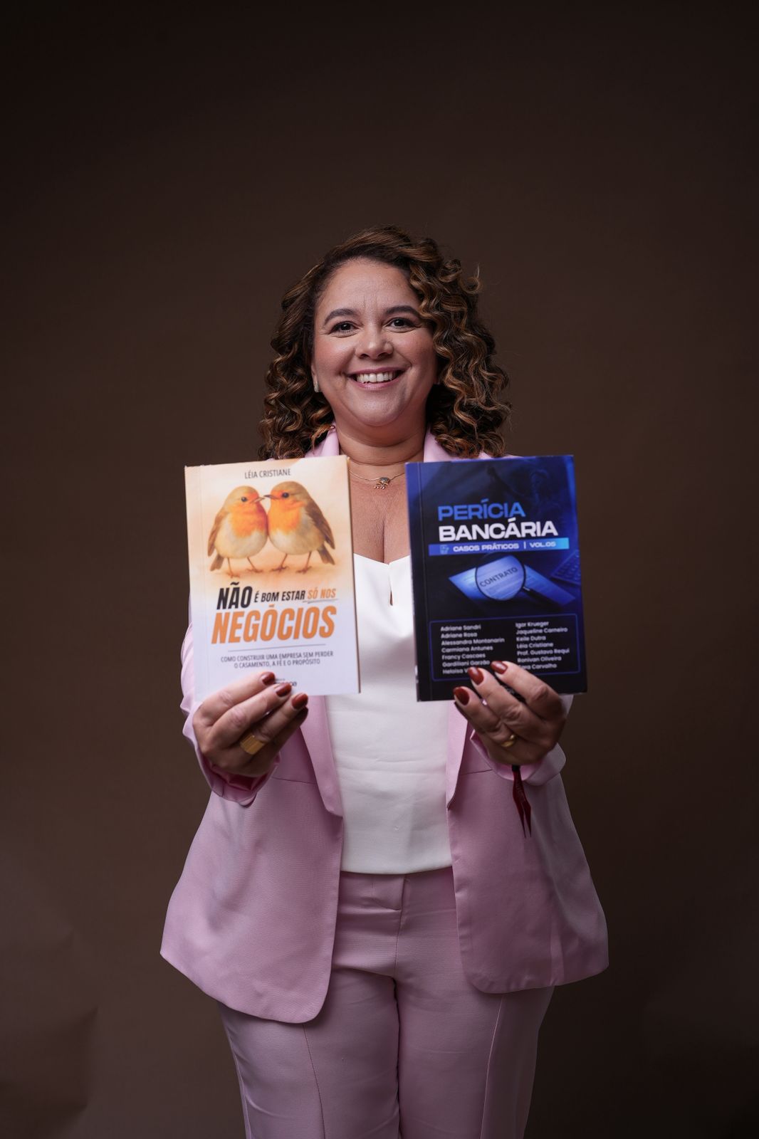 Léia também integra o elenco de coautores do volume técnico Casos Práticos da Perícia Bancária – Vol. 05, consolidando sua posição como referência em perícia contábil e empreendedorismo com propósito.
