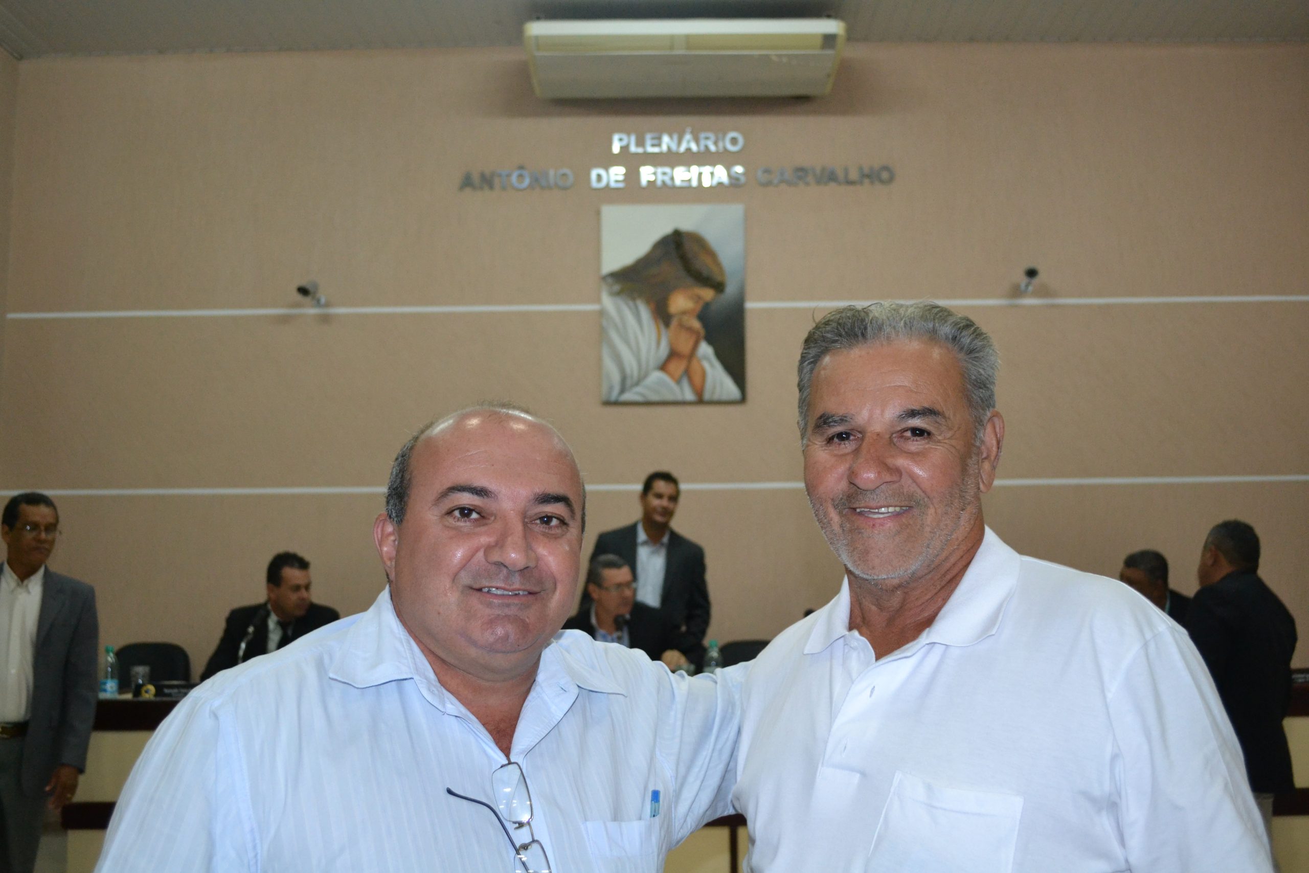 Vany Custódio (dir.), em sessão da Câmara, juntamente com o hoje também vereador Chiquinho (UB), outro ex-presidente da Casa de Leis: vasta atuação no setor público – Foto, inclusive da home: Márcia Cristina/JORNAL CIDADE