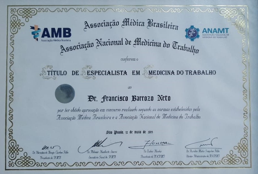Um dos mais tradicionais e qualificados médicos do trabalho dentro de Goiás, doutor Francisco relembra que ao fazer no ano de 2013 a especialização em Medicina do Trabalho em São Paulo-SP, após intensos estudos foi aprovado nacionalmente já na primeira tentativa.