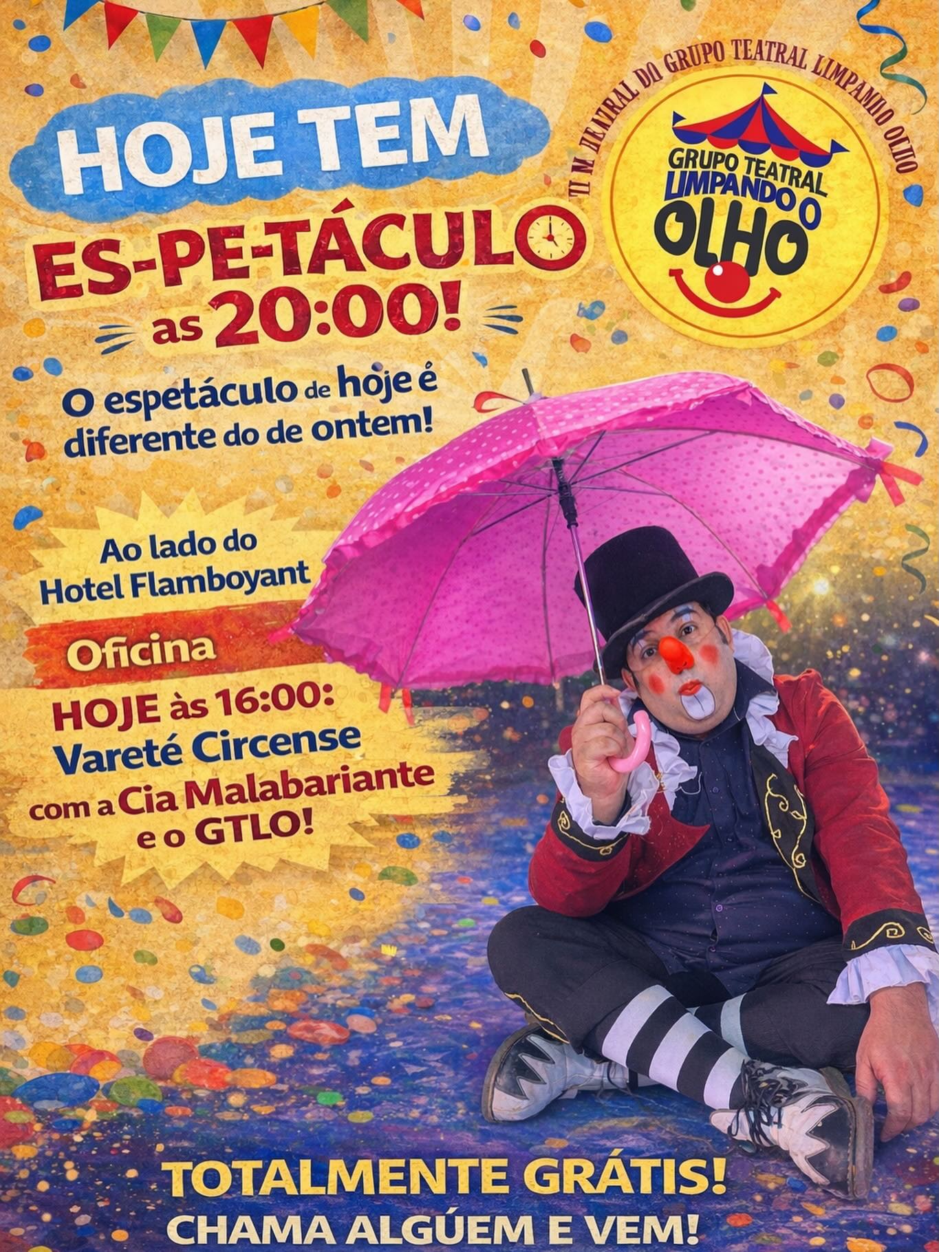 Uruaçu, circo do Grupo Teatral Limpando o Olho montado na rua Feliciano Custódio de Freitas, Centro: às 20h, certeza de que tudo vai ferver com um espetáculo diferente do de ontem! É dia de Vareté Circense, com a Cia Malabariante + o GTLO!. E tem mais: Oficina, às 16h (corra, que ainda é possível participar!). 100% da entrada é gratuita! Chama a família, os amigos, os vizinhos e adentre o circo, vivenciando instantes mágicos com excelentes artistas (Com atualizações)! – Imagem: Divulgação/GTLO