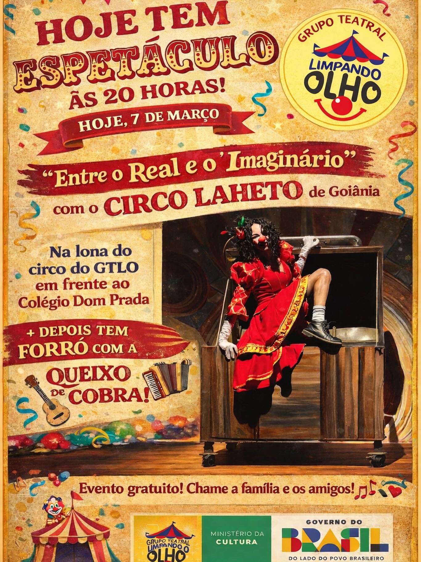 Hoje tem circo e forró! Participe, você, sua família, seus amigos, gratuitamente!