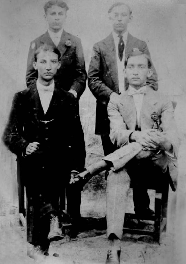 De pé, à direita, Coquelin Ayres Leal. Sentados: Voltaire Ayres Cavalcante (à esquerda) e Joaquim Ayres Cavalcanti Wolney Filho – Wolneyzinho (à direita)