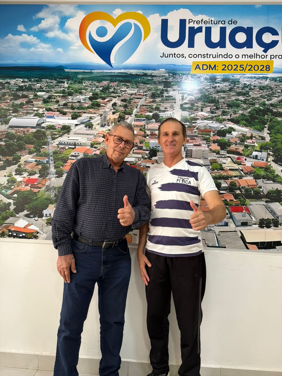 Robson Pimentel foi exonerado da Secretaria Municipal de Esporte, Juventude e Lazer uruaçuense. No lugar dele, foi anunciado Carlos Divino Cipriano (Castelo) (dir.), experiente servidor concursado da área educacional do Executivo nortense e profissional que o colunista gostaria, faz tempo, de vê-lo ocupando a titularidade da Pasta da Cultura. Além de professor (e uma das pessoas mais educadas dentro de Uruaçu [um gentleman]), Castelo é educador físico, técnico de voleibol e tem especialização em treinamento esportivo (jogos e testes). Pimentel é o quarto ocupante de cargo do escalão central de Machadinho (MDB) (esq.) a deixar a Prefeitura. Antes, saíram Viviane Bueno (Saúde/ela pediu exoneração), substituída por Wesley Costa; Marciell Lázaro (Articulação Política), exonerado e sucedido por Taroba; e, Dhone Rodrigues (Cultura), também exonerado e, interinamente substituído pela superintendente Jouse Lopes. Mais os casos de dois nomes anunciados que não chegaram a compor a gestão: Vassil Oliveira (Comunicação e Marketing; assumiu Edmílson Almeida) e doutor Natalício Cardoso (Segurança Pública, não foi criada). – Foto: Secom/Prefeitura
