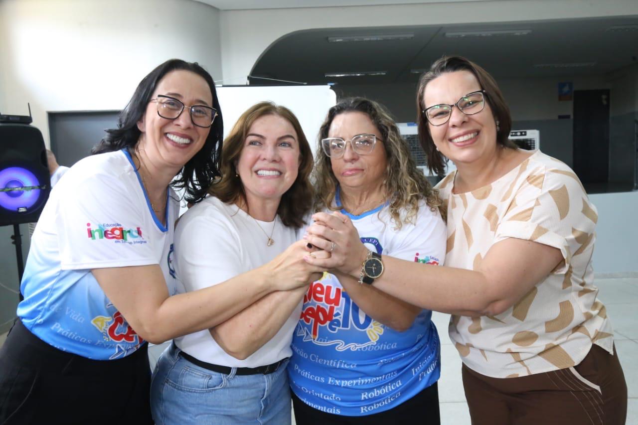 Paralelamente aos avanços pedagógicos, a Coordenação Regional de Educação de Uruaçu, comandada por Luciana Arminda (2ª esq.), registrou importantes avanços no campo da infraestrutura escolar. Fátima Gavioli (3ª esq.) tem atenção especial para com as necessidades de todas as Coordenações. Trabalho em equipe