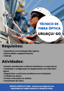TÉCNICO DE FIBRA ÓPTICA. Processo Seletivo – Técnico Uruaçu (GO). Vaga de emprego 10/05/2021 17:23:52 by Jota