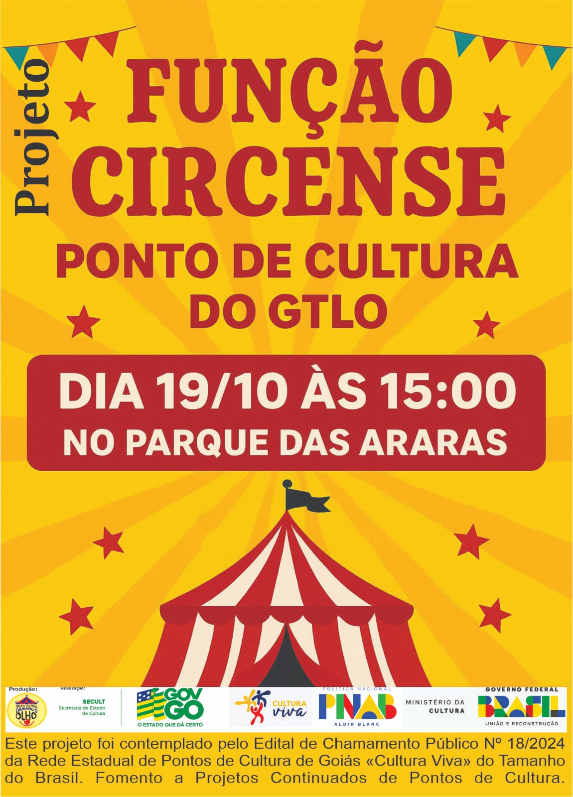 A iniciativa cultural integra o denominado PROJETO FUNÇÃO CIRCENSE DO PONTO DE CULTURA DO GTLO – CULTURA VIVA DO TAMANHO DO BRASIL! PREMIAÇÃO CULTURA VIVA DE PROJETOS, INICIATIVAS, ATIVIDADES OU AÇÕES DE PONTOS DE CULTURA DE GOIÁS – PNAB GOIÁS.