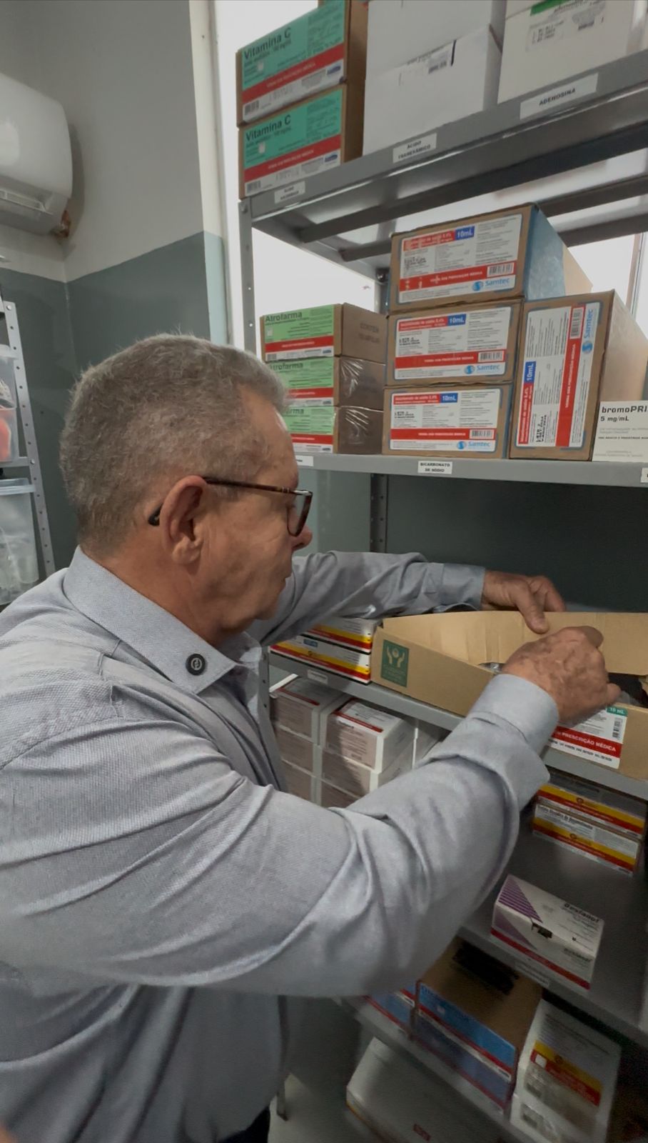Farmácia 24hs na UPA: paciente retorna ao lar com o medicamento. Na foto, o prefeito Machadinho no interior do espaço, quando da inauguração