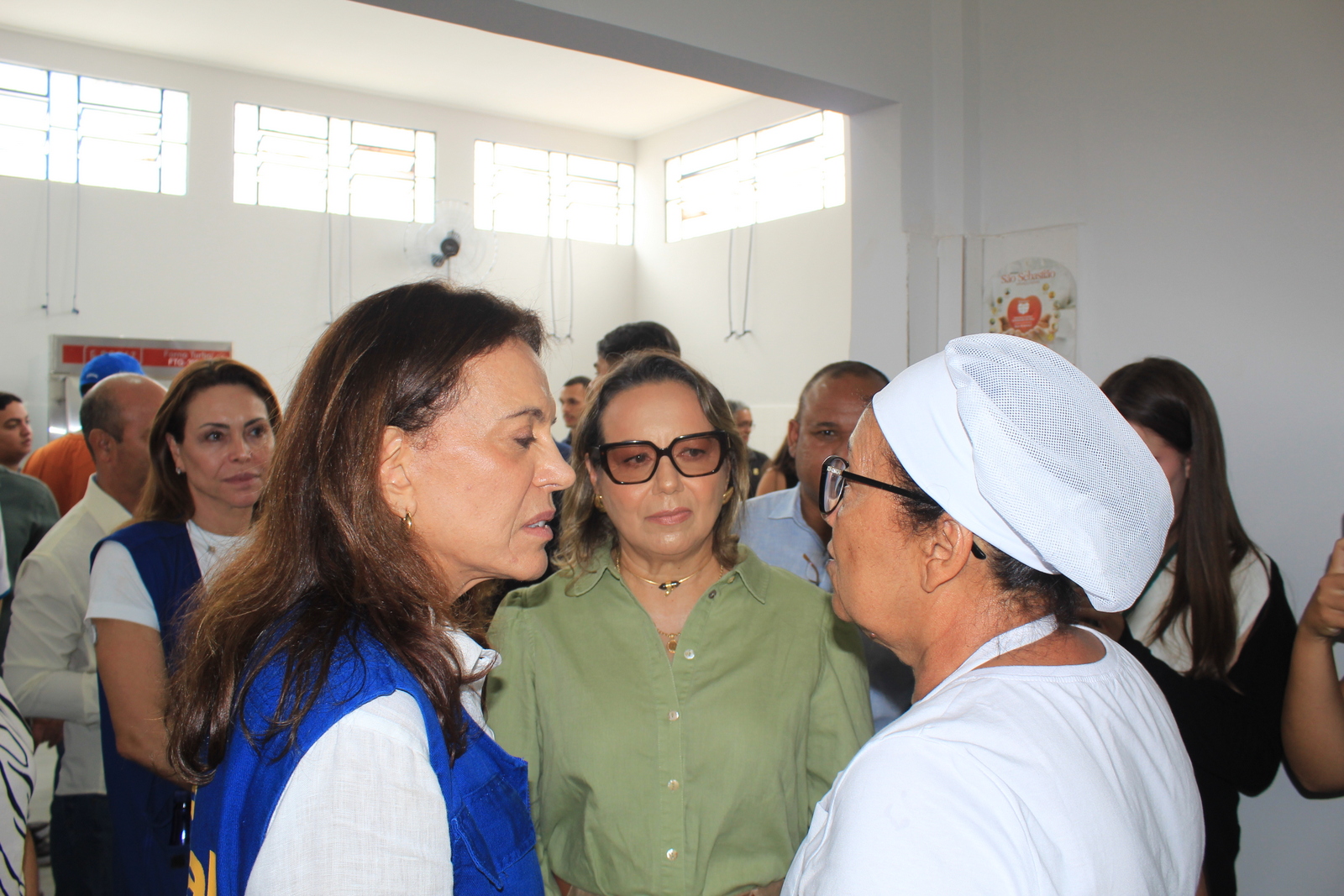 Primeira-dama de Goiás Gracinha Caiado (esq.) em Uruaçu, recepcionada pela primeira-dama de Uruaçu, Márcia Machado Pedrosa (centro), e equipe. Era a inauguração da nova sede do Programa Pão de Todos – Mais fotos, abaixo