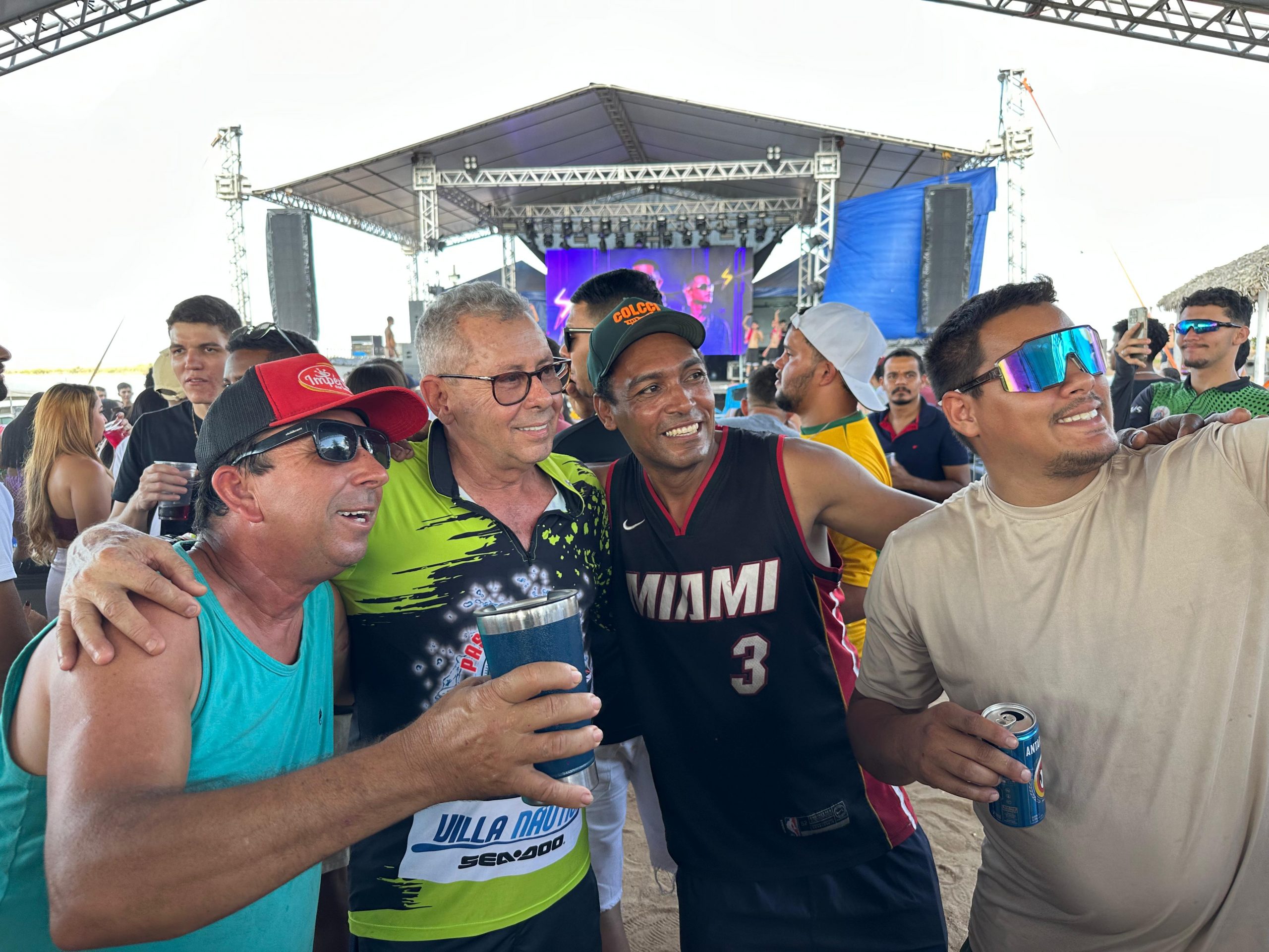 Festival Pé Na Areia, realizado na praia Generosa (lago Serra da Mesa), com a presença do prefeito Machadinho (centro) e da equipe