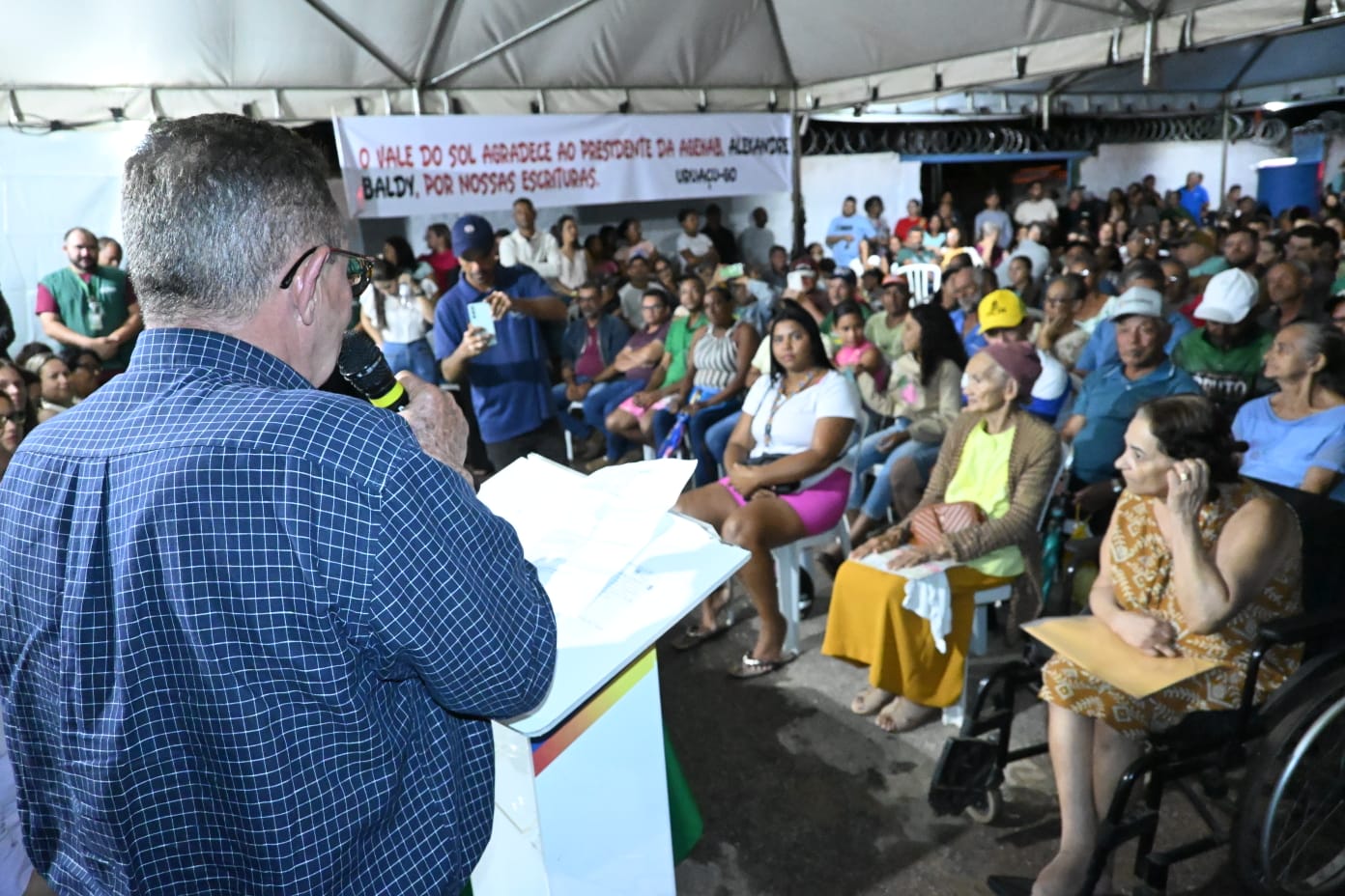 Contando com a presença de autoridades municipais e estaduais, técnicos da área, personalidades populares e contemplados com a iniciativa assistencial habitacional, a Prefeitura de Uruaçu, em parceria com a Agência Goiana de Habitação (Agehab), realizou reunião na noite de 5 de fevereiro, em frente à sede da Escola Municipal Eneas Fernandes de Carvalho).